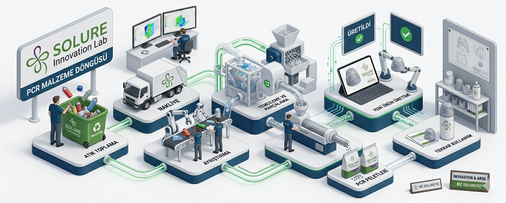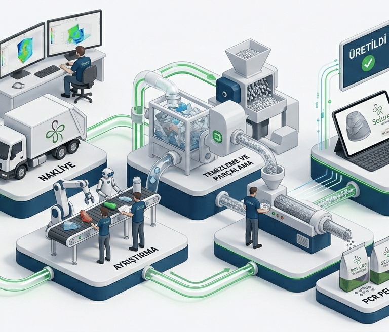 PCR malzemeler, tasarım + kalıp + proses optimizasyonu ile birlikte ele alınır. Çünkü sürdürülebilirlik ancak mühendislik ile döngüsel ekonomi adaptasyonuyla mümkündür.